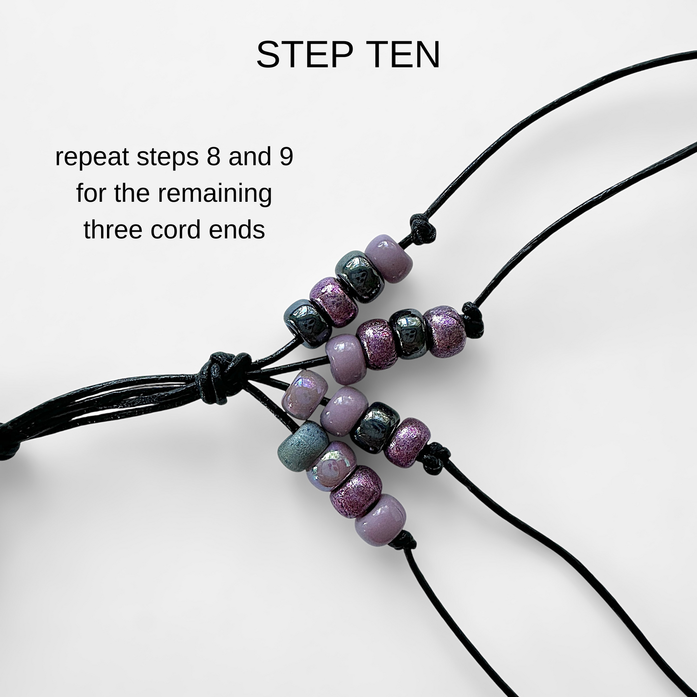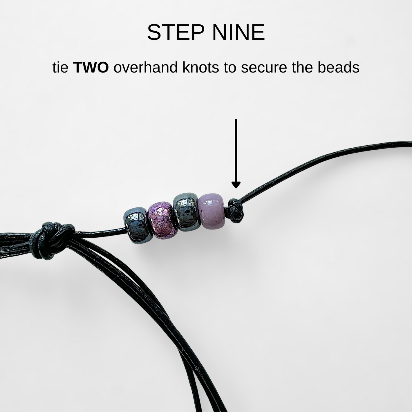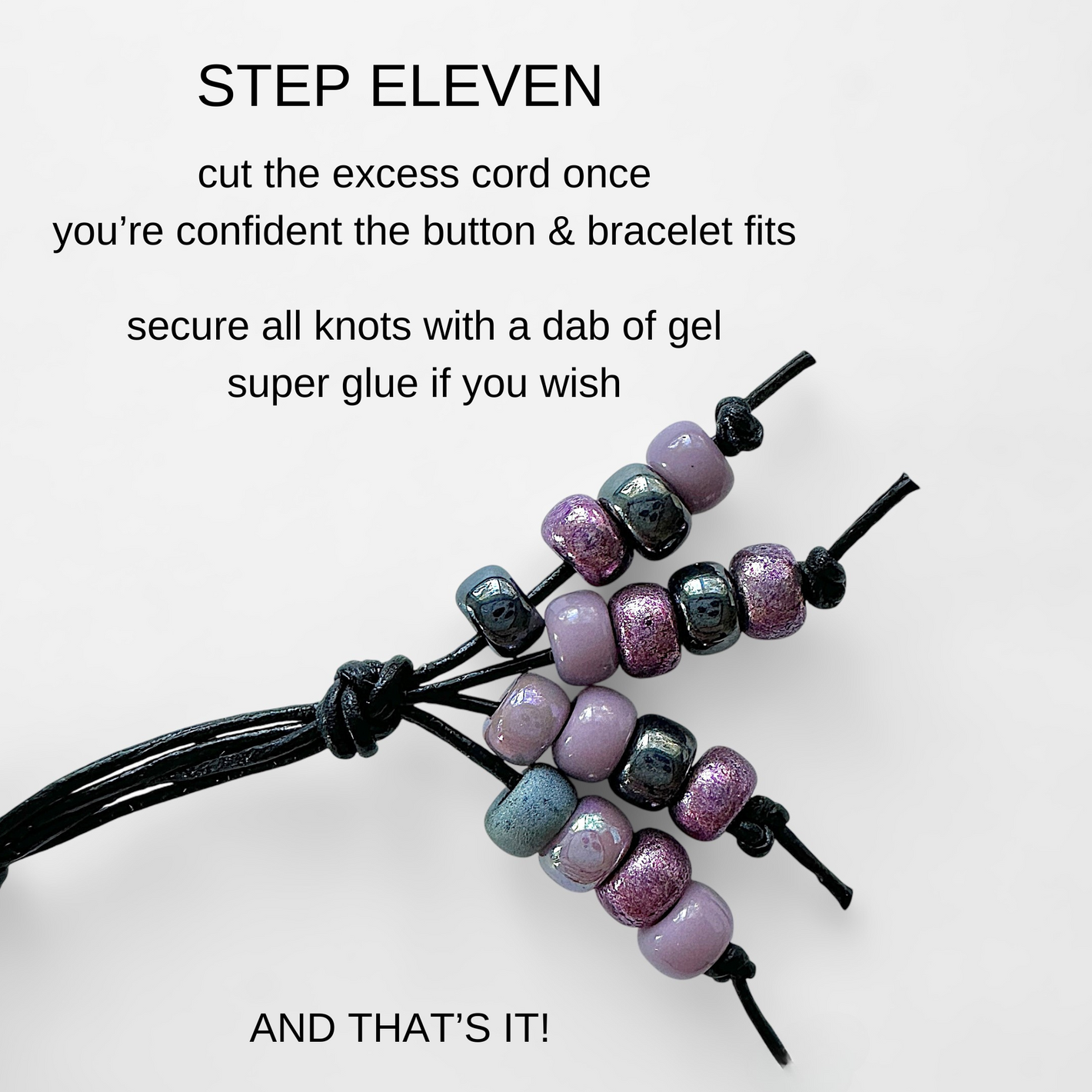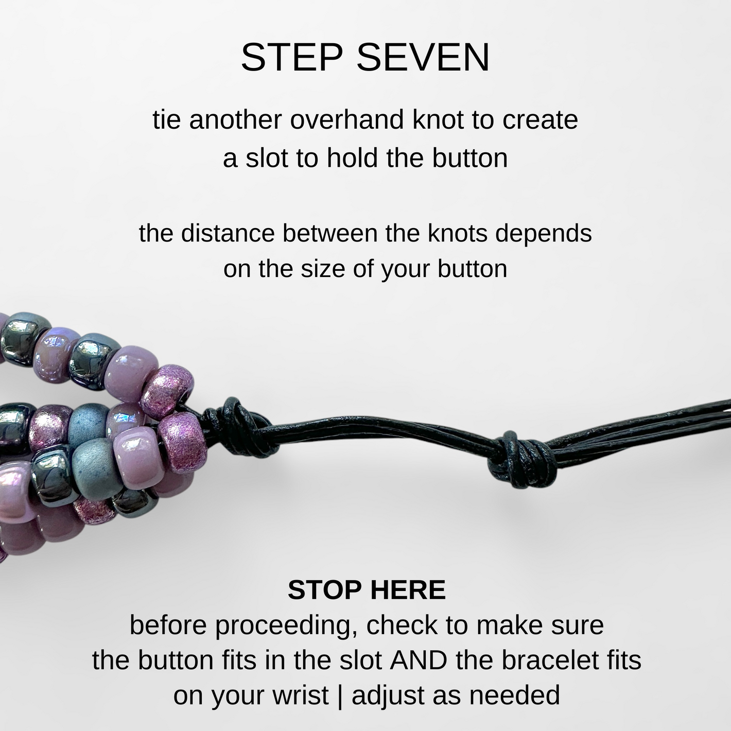 I recommend securing your knots with a dab of gel super glue. But only after you confirm the button fits in the slot you made and the bracelet fits on your wrist. Because once you add glue, you can't make adjustments.
