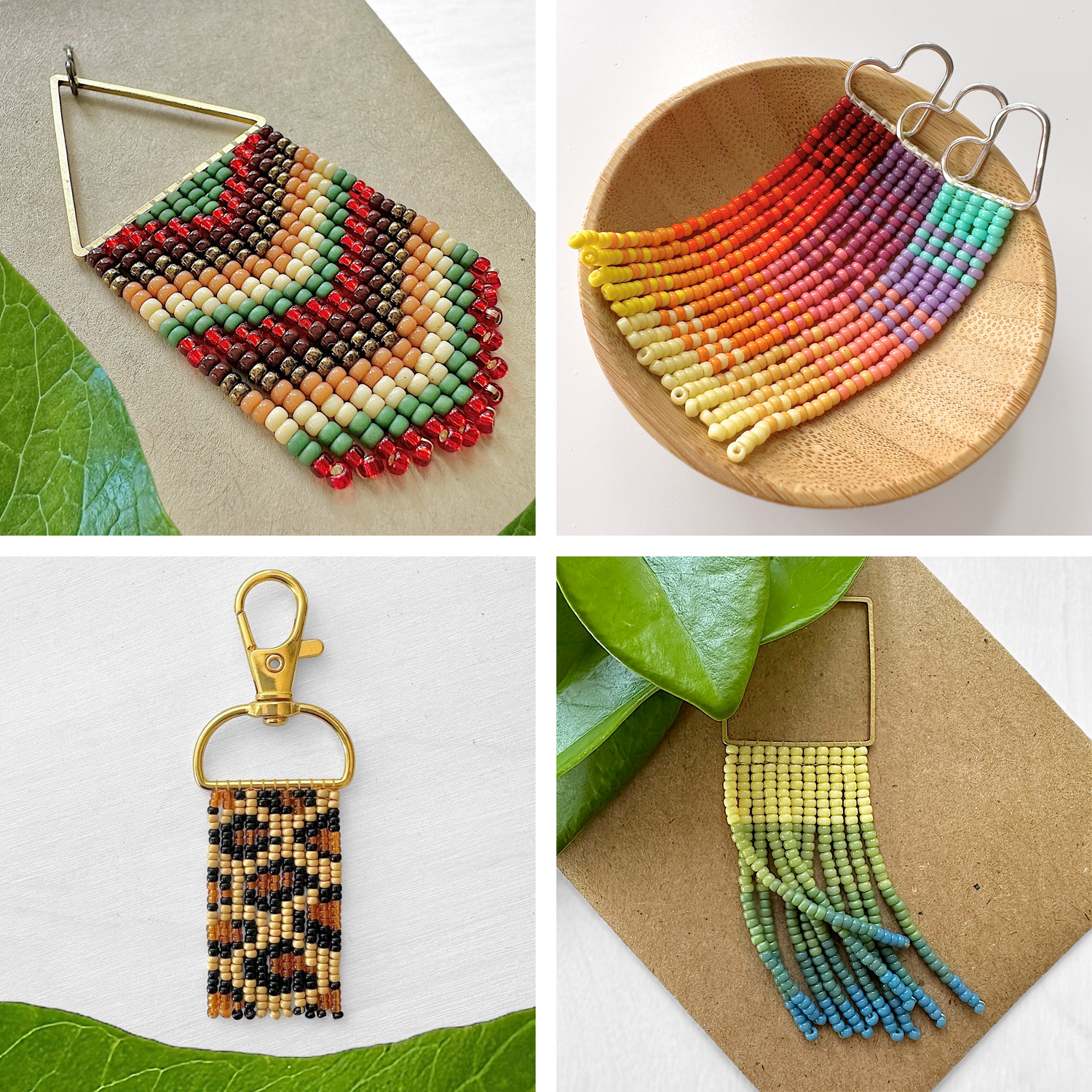 This technique allows you to add fringe to almost any size or shape frame to make beautiful beaded fringe earrings or bag charms.