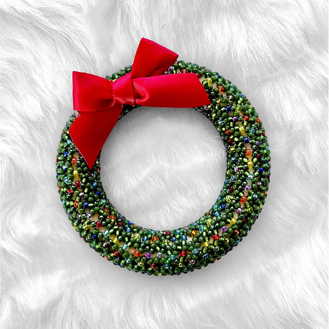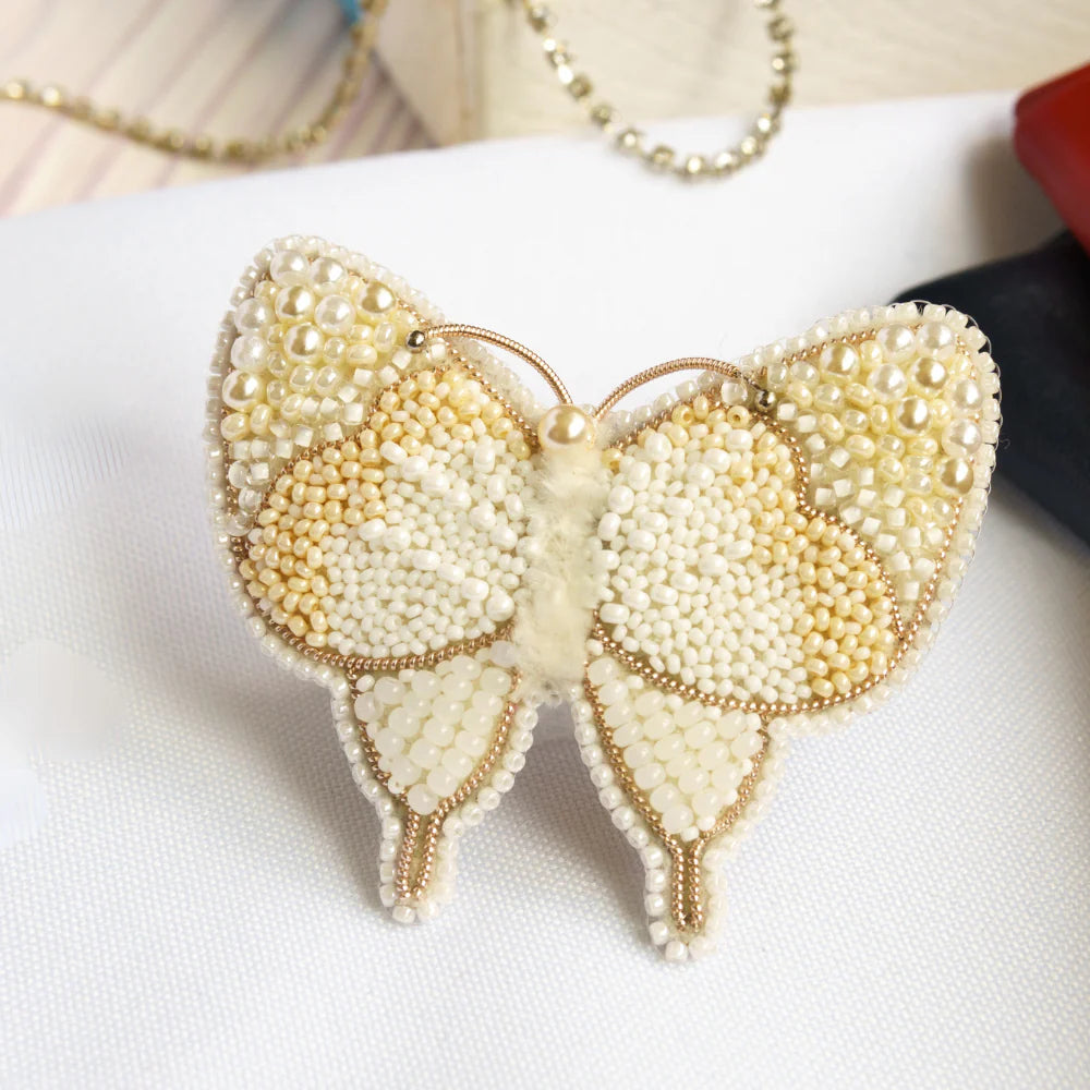 Seed beads are often used as embellishments through bead embroidery. Using a needle and thread, they can be sewn onto fabric, bags, belts, shoes, hats, costumes, and more to create beautifully textured designs and add some sparkle. Bead embroidery can also be used to create beaded brooches as shown below.