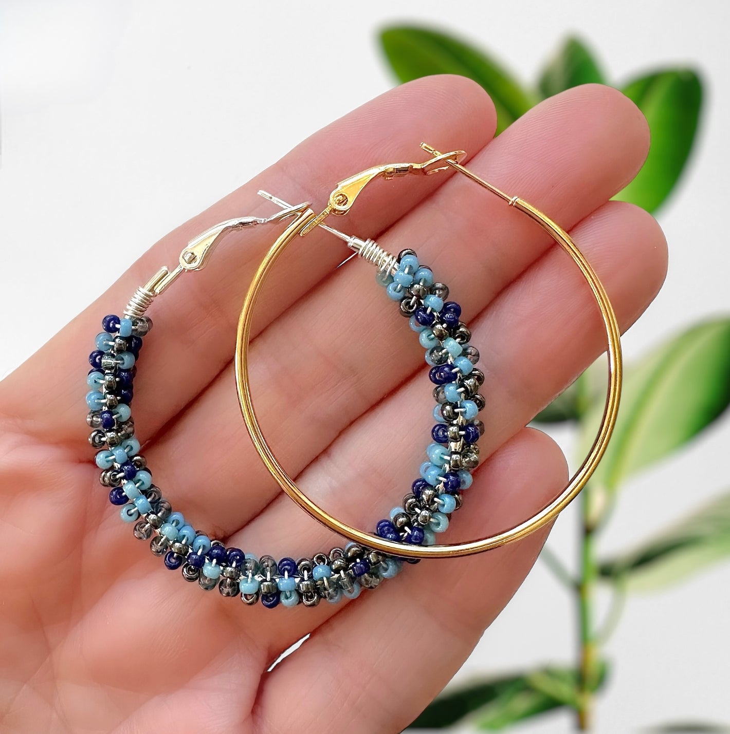 2 pairs of silver-plated 40mm hoop earrings. These can be used to wire-wrap, brick stitch around, hang beaded fringe from, and more. Lots of possibilities!