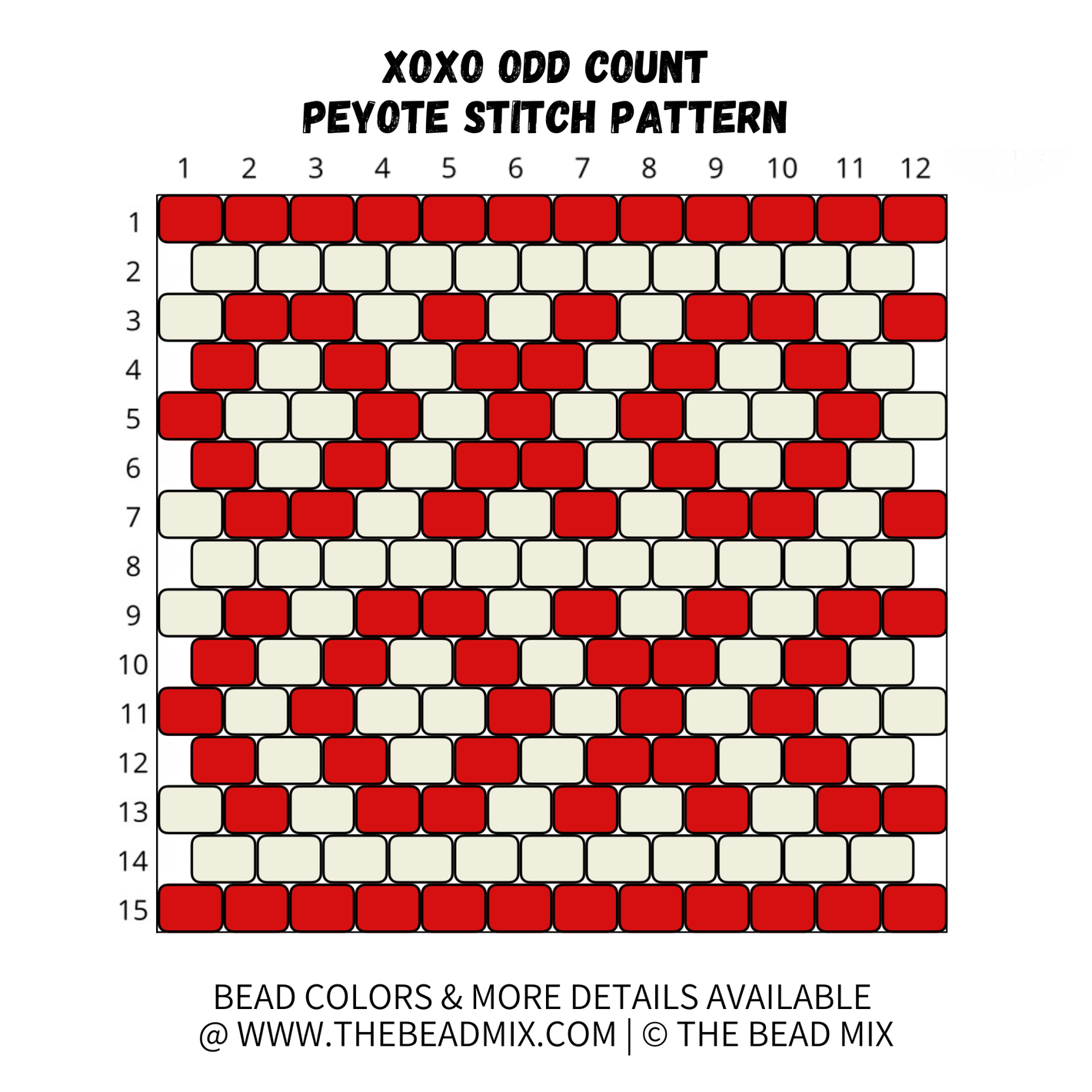 XOXO Odd Count Peyote Stitch Pattern