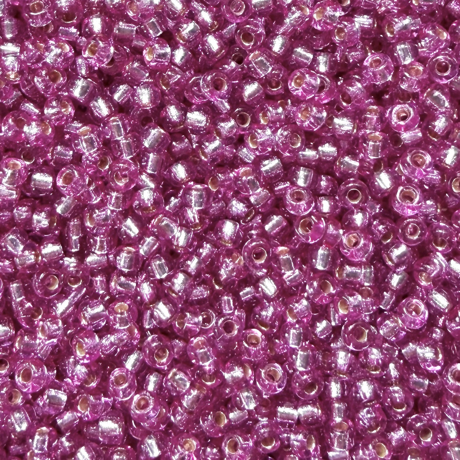 Silver lined Duracoat Dusty Orchid Miyuki size 11 glass seed beads.